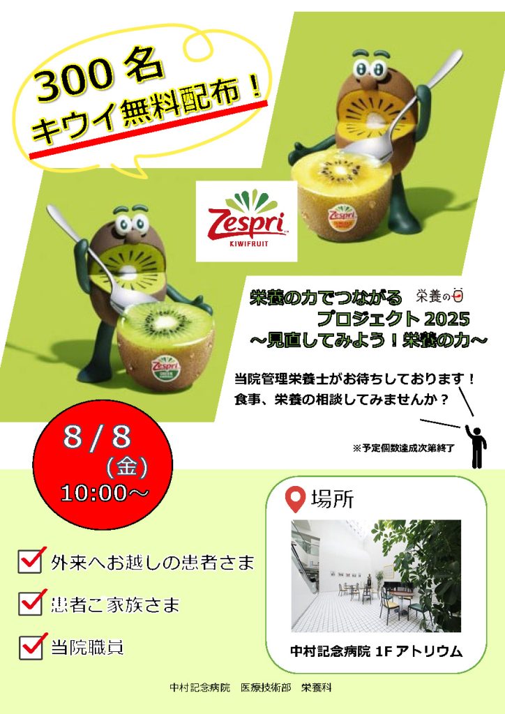 当院では栄養週間に合わせて、8/8(金)に「栄養の力でつながるプロジェクト2025~見直してみよう!栄養の力~」を開催いたします。